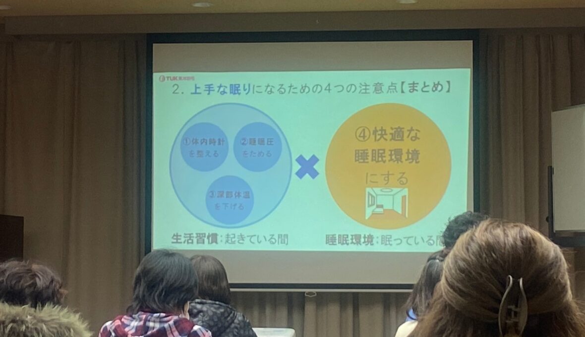 社内研修、今回のテーマは「意外と知らない上手な眠り方」について。