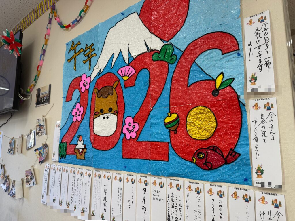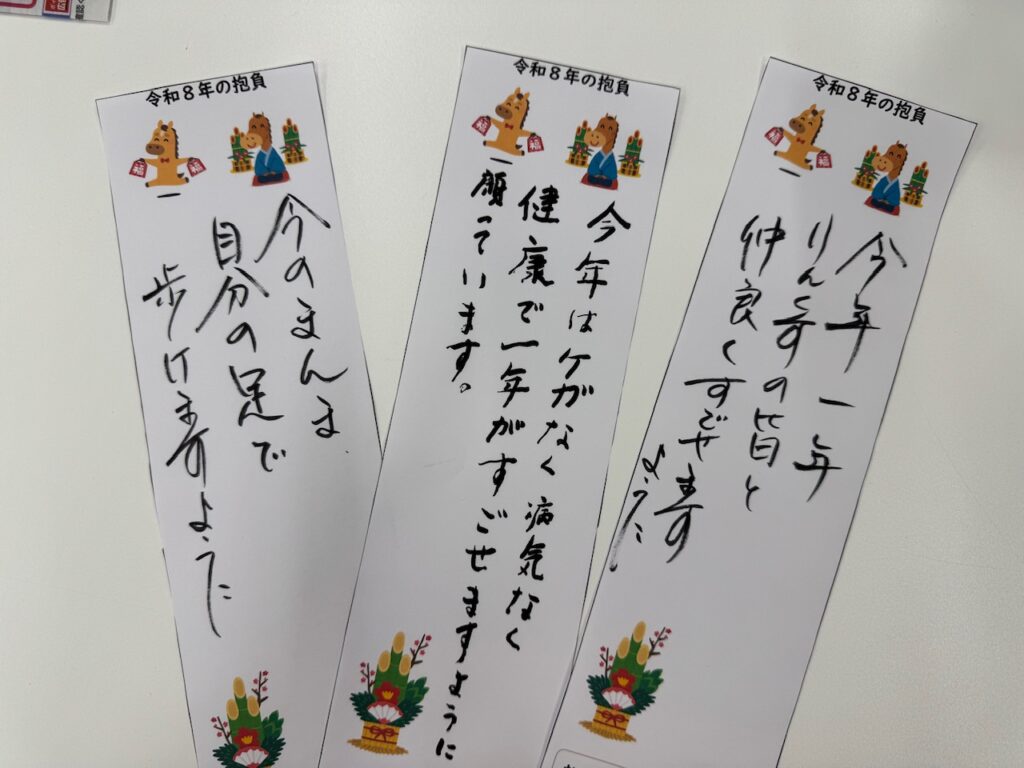 さて、2026年新しい年を迎え、デイステーションりんくすでは恒例の『今年の抱負』をご利用者皆さんに書いていただいています✨