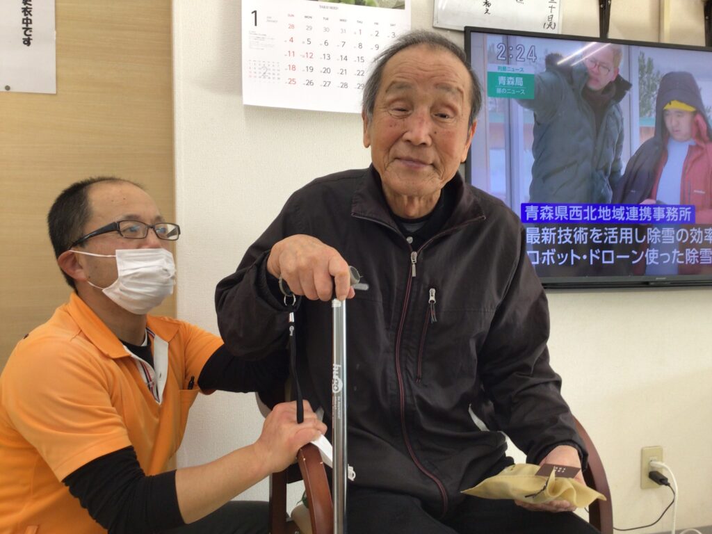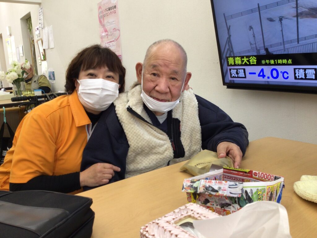 こちらの方もプレゼントを貰って職員と一緒にパシャリ☺️笑顔が素敵です☺️おめでとうございます㊗️